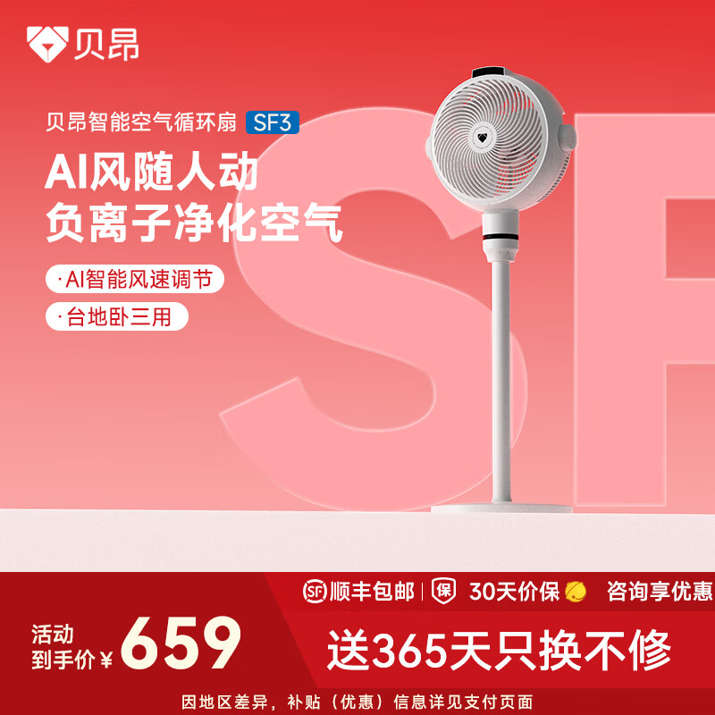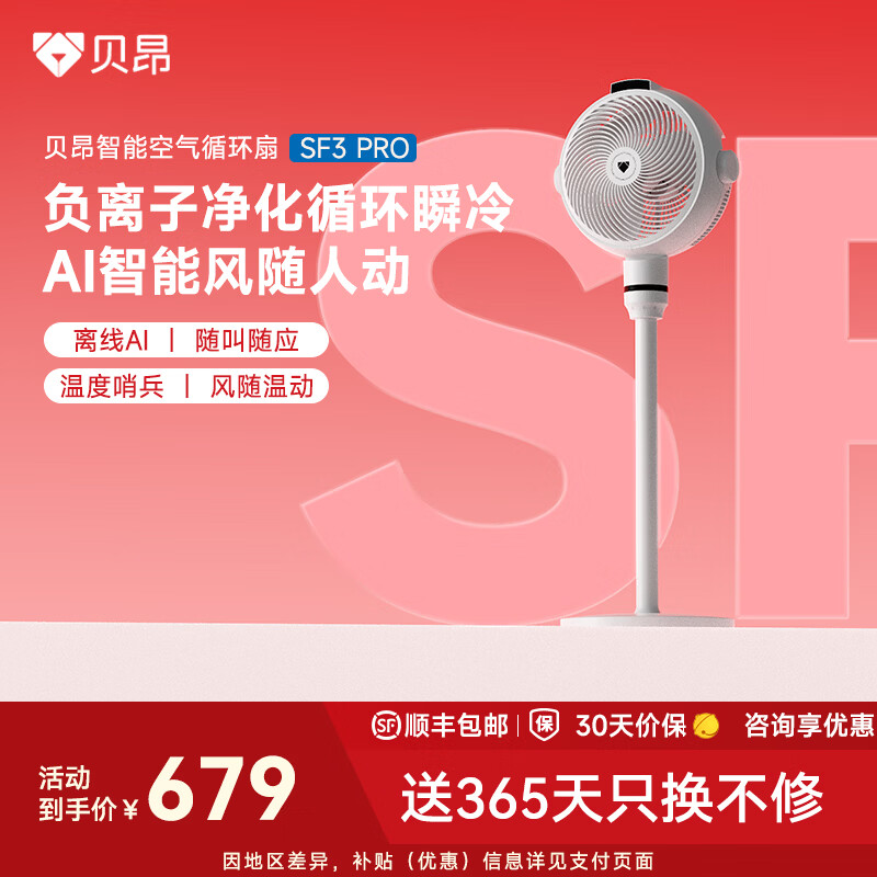 贝昂空气循环扇静音卧室客厅电风扇智能语音节能大风力直流变频家用风扇台式桌面电风扇3D摇头 SF3 Pro功能升级【支持鸿蒙智联】