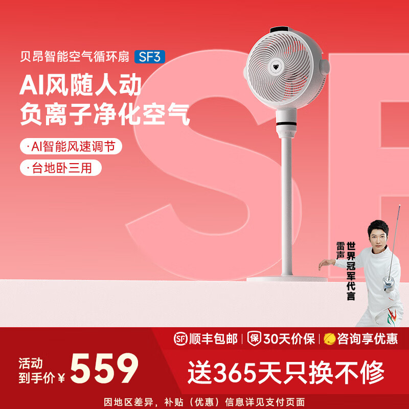 贝昂空气循环扇静音卧室客厅电风扇智能语音节能大风力直流变频家用风扇台式桌面电风扇3D摇头 SF3【风随温变】负离子净化