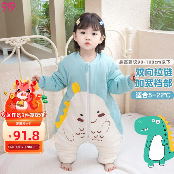 9i9婴儿睡袋冬加厚宝宝防踢被儿童连体睡衣纯棉分腿加棉100码A198 A类 表层纯棉 身高90-100