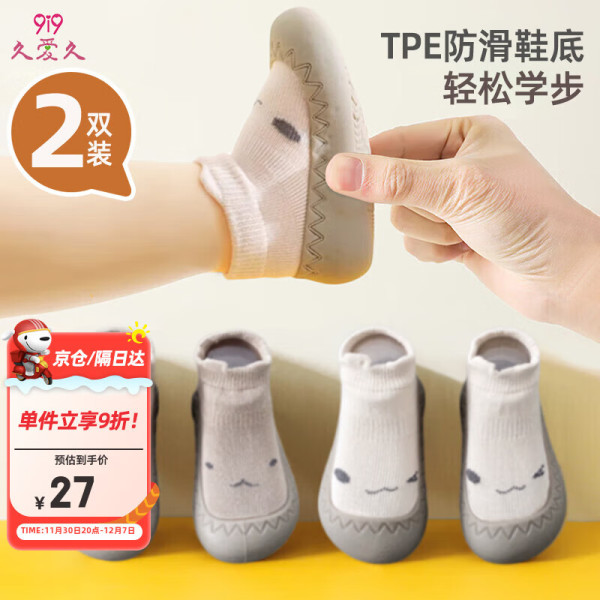 久爱久 宝宝学步鞋2双 婴儿地板袜子室内软底鞋防滑隔凉早教脚套2双A170