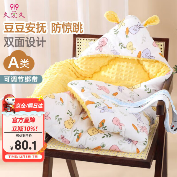 久爱久 婴儿抱被冬加厚纯棉豆豆绒包被包巾宝宝新生儿裹被A106兔子