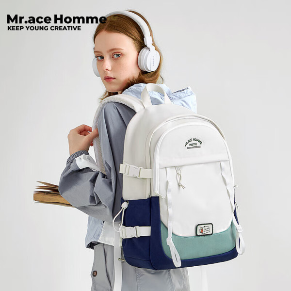 Mr.ace Homme 韩版时尚学生书包 15英寸大容量电脑包 双肩包