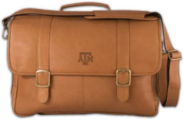 Pangea Brands NCAA Texas A&M Aggies 棕褐色皮革舷窗笔记本电脑公文包