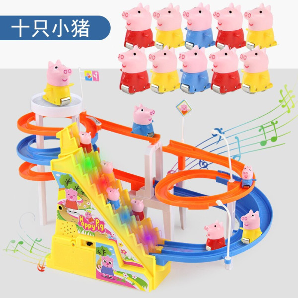俞氏兴小猪佩奇玩具小鸭子爬楼梯轨道上楼梯动物滑滑梯电动玩具 大号小猪USB版【双轨10公仔】