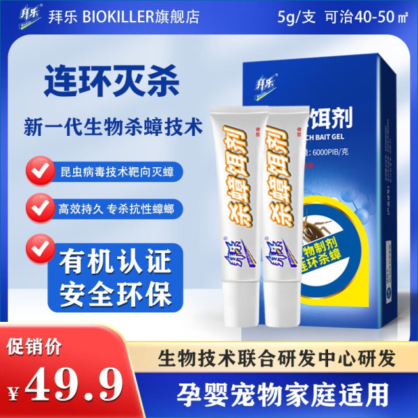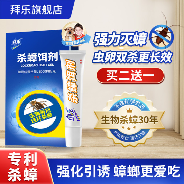 移动端:拜乐 蟑螂药拜乐生物杀蟑螂胶饵剂家用引诱连锁灭蟑螂药饵送蟑螂粘板贴