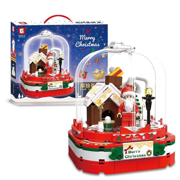 美及积木圣诞节玩具缤纷圣诞老人小屋惊喜盒手工拼装桌面摆件拼装 1个 缤纷圣诞旋转灯光