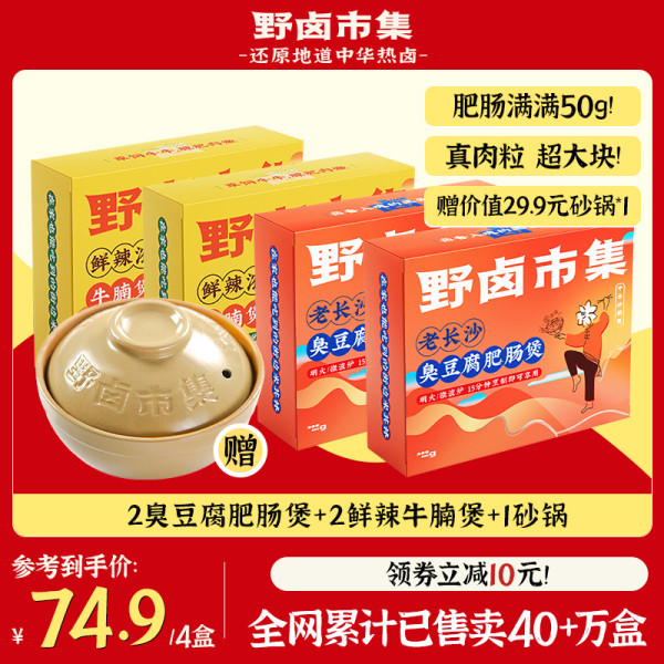 野卤市集 臭豆腐肥肠米线砂锅煲方便面速食懒人速食米粉
