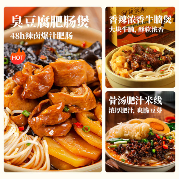 野卤市集 臭豆腐肥肠煲米线湖南米粉代餐速食牛肉粉丝