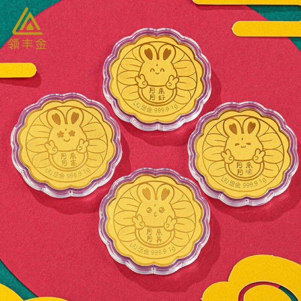 领丰金黄金月饼造型足金9999投资金条金片金月兔送人摆件收藏 月来月富(带礼盒) 1g