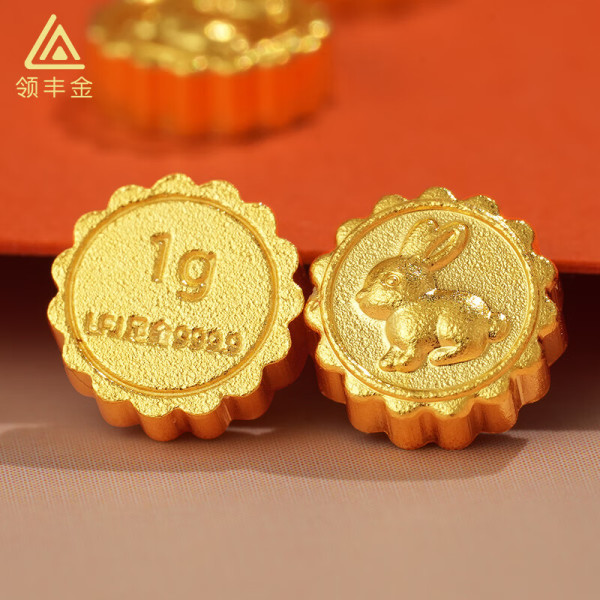 领丰金足金9999 兔子月饼金豆豆黄金投资金收藏攒金豆子 足金9999 兔子月饼金豆豆 1g