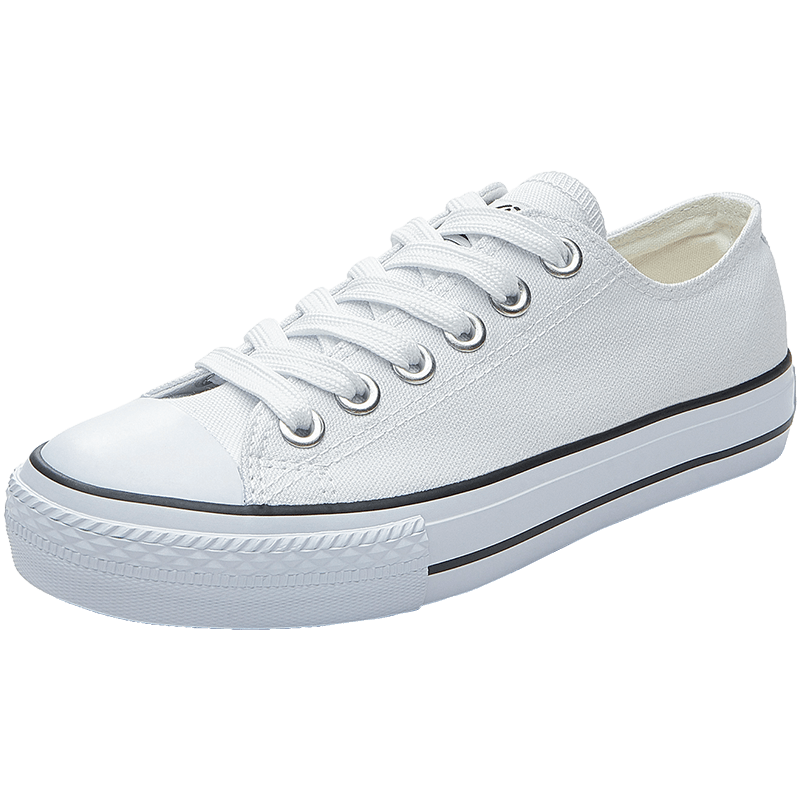人本帆布鞋女平底运动板鞋经典情侣原宿板鞋 学生韩版校园布鞋 白黑 (女款偏大半码) 38 女款