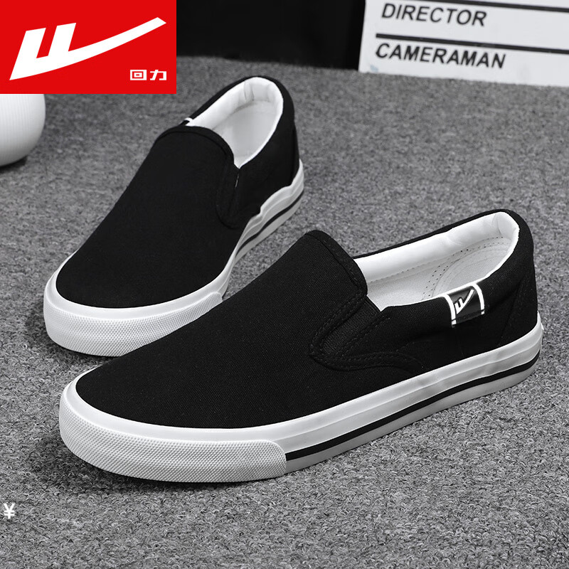 回力男女鞋休闲鞋春季一脚蹬帆布鞋透气老北京布鞋时尚懒人鞋子豆豆鞋 黑色HL903 41