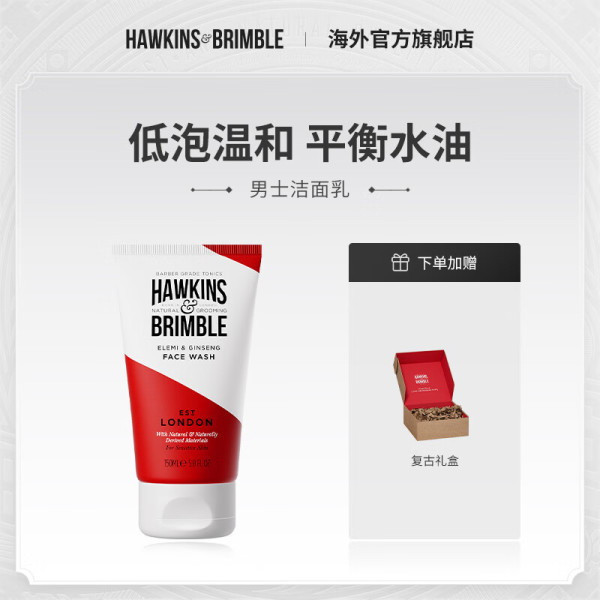 HAWKINS & BRIMBLE霍金斯APG洁面啫喱150ml男士洗面奶温和清洁控油不紧绷
