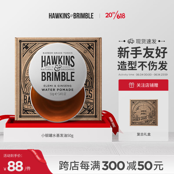 HAWKINS & BRIMBLE 霍金斯小银罐水基发油复古礼盒男士理容套装清爽塑型送男生礼物 50ml