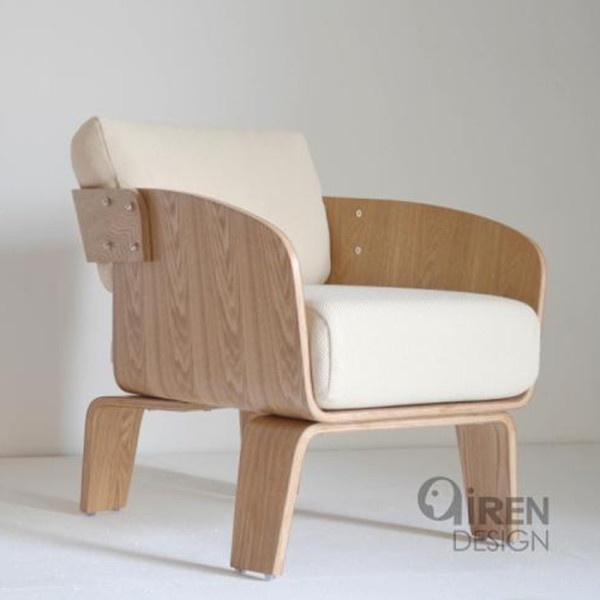 祁人家具 R06 原木色沙发椅 卡其亚麻布 73*52*57cm