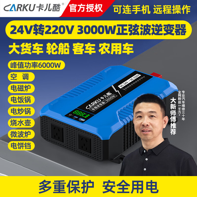 卡儿酷(CARKU)车载逆变器充电一体机纯正弦波24V转220V大货车卡车用电源转换器 24V转220v 3000W逆变器【单向】
