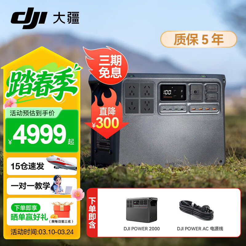 大疆户外电源DJI Power 2000/1000v2/1000mini 2度电/1度电220V 大功率露营车载应急移动储能太阳能 3000W 2048Wh 2度电 官方标配