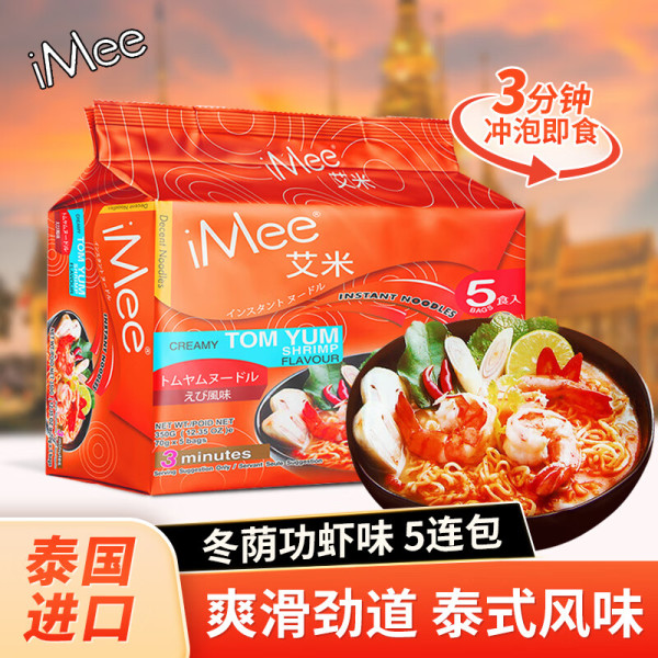艾米(iMee) 方便面冬荫功虾味 泰国进口泡面五连包速食方便面