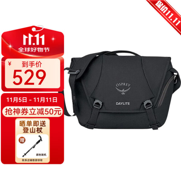 小鹰户外包 日光Daylite Messenger 男女斜挎包单肩包 12L 黑色