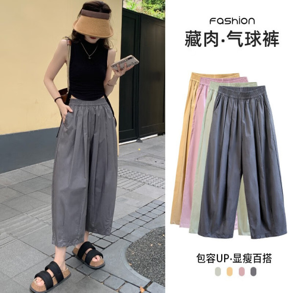 在水蓉休闲工装裤女夏高腰显瘦哈伦萝卜裤宽松直筒阔腿气球裤 灰色-1条 均码(建议80-140斤)