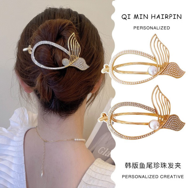 在水蓉女士韩版珍珠装饰配饰 鱼尾 夹 女生气质 夹 饰 鱼尾抓夹