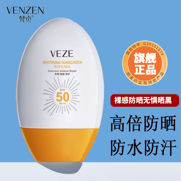 梵贞(venzen)防晒霜防水防汗持久户外军训专用隔离紫外线高倍防晒乳面部男女 高倍防晒霜l(1瓶)
