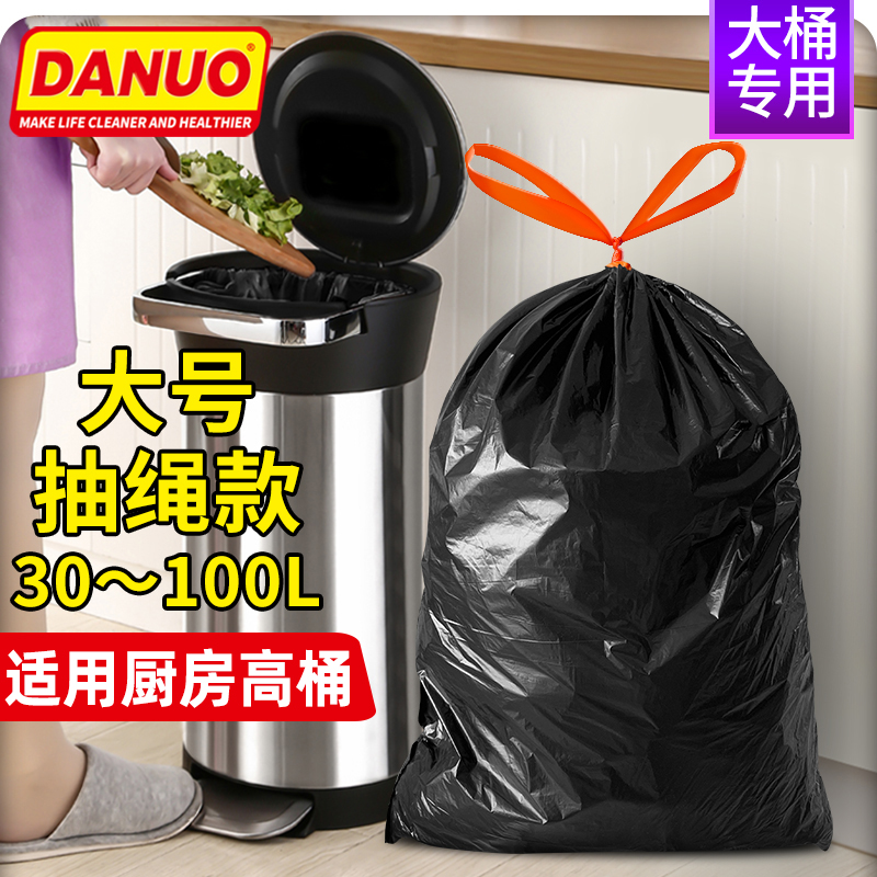 danuo大号抽绳垃圾袋厨房大桶专用加厚手提自动收口家用卷装穿绳
