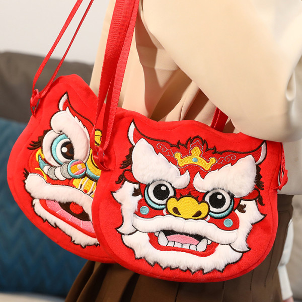 2024宝宝钱包龙年吉祥物儿童斜挎包过年宝宝拜年零钱包醒狮小红包