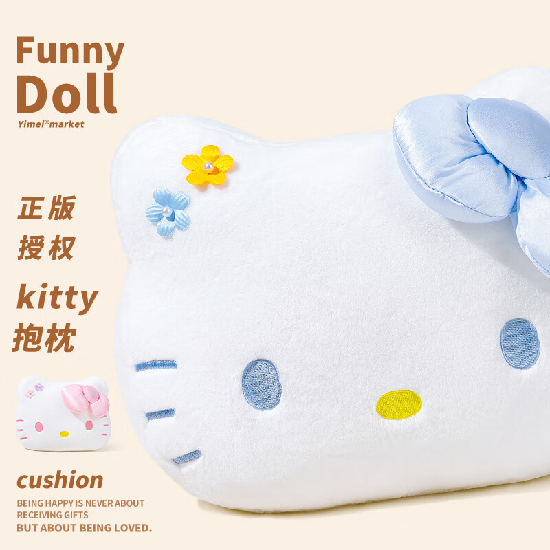 尚绒坊 正版Hello Kitty玩偶凯蒂猫毛绒玩具KT猫公仔送女生女孩生日礼物 花朵kt抱枕-蓝色30cm 正版HelloKitty