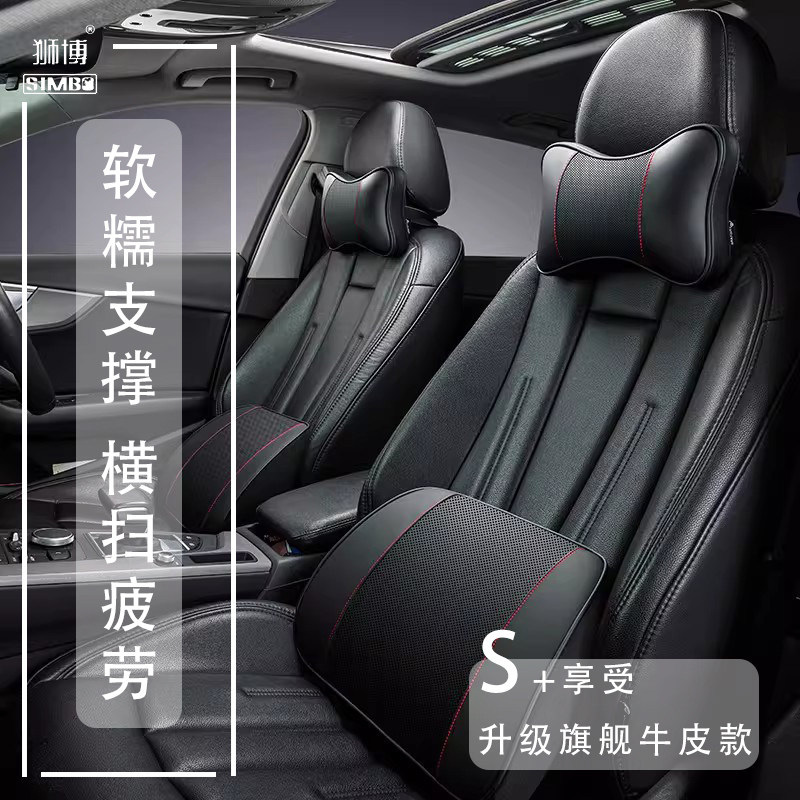 狮博 SIMB 头层真牛皮汽车头枕护颈枕头车内睡觉靠枕车枕车载车用靠枕颈透气