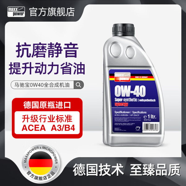 马驰宝 Maxxpower 迈跑系列 SN/A3/B4 0W-40 迈跑0W40 全合成机油 1L