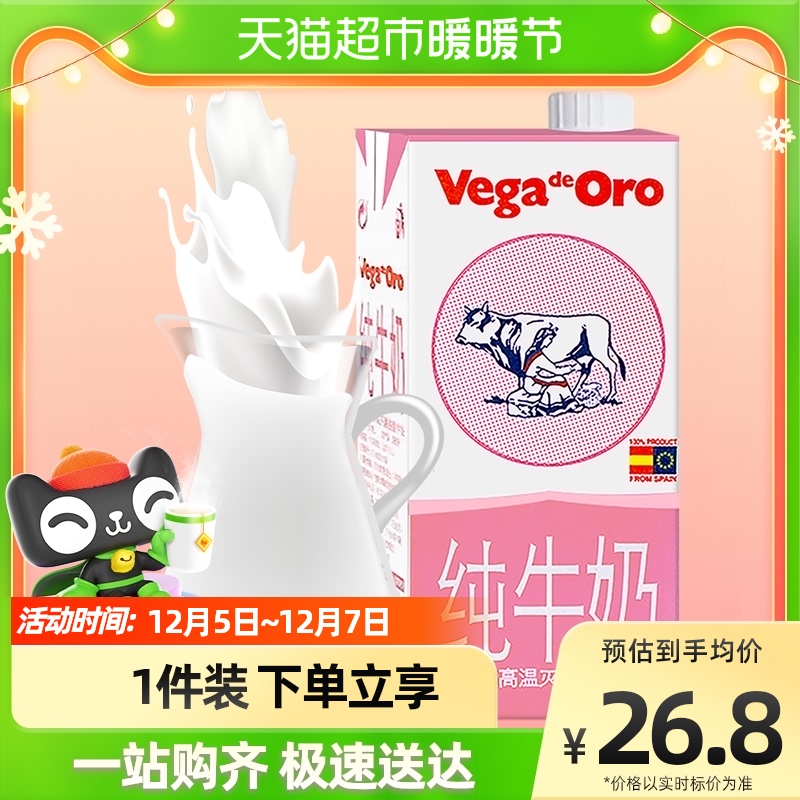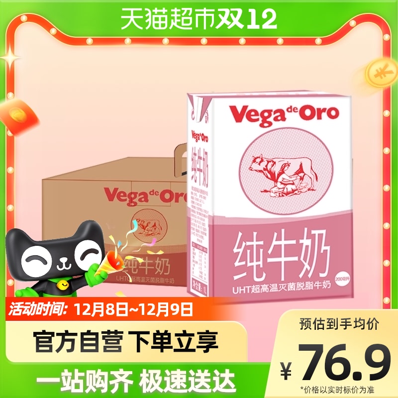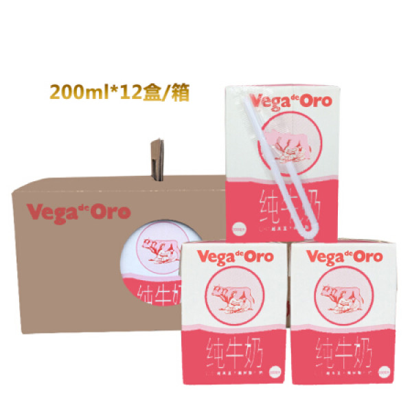 西班牙进口 Vega de oro维加脱脂纯牛奶200ml*12盒 早餐奶 整箱装
