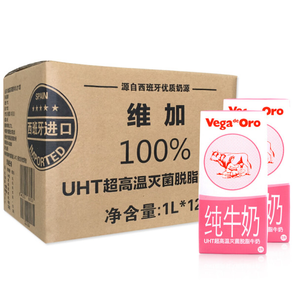 Vega de Oro 维加 脱脂纯牛奶 1L*12盒