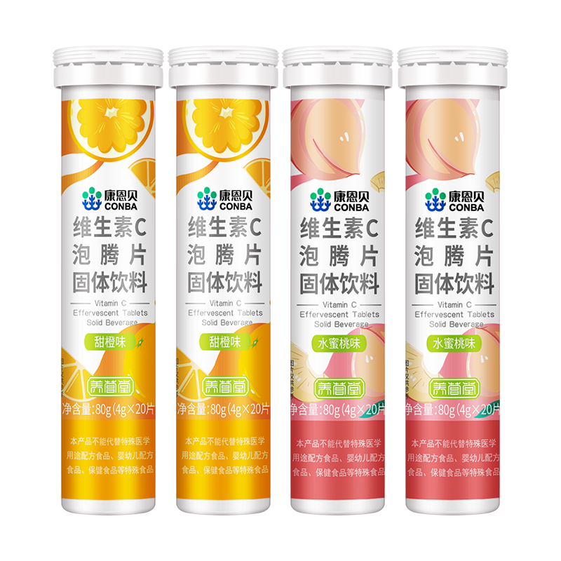 康恩贝维生素C泡腾片4支*20片固体饮料vc泡腾片(甜橙味2支 水蜜桃味2支)