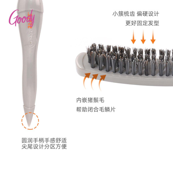 Goody歌妮含猪鬃毛造型发梳尖尾梳卷发发饰头饰家用便携梳子2个装