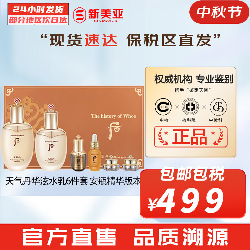 后(The history of Whoo)后套装拱辰享水妍津率享雪玉凝天气丹水乳霜秘贴套盒女护肤品礼盒 天气丹华泫水乳6件套礼盒