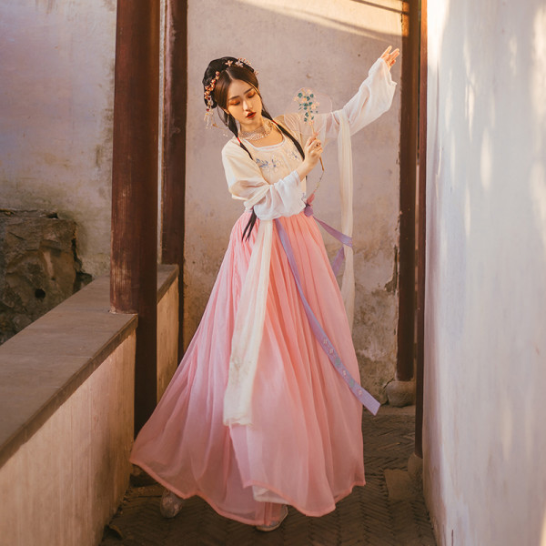 赋南歌 汉服 碧桃枝 女士一片式齐腰下裙 粉色 S