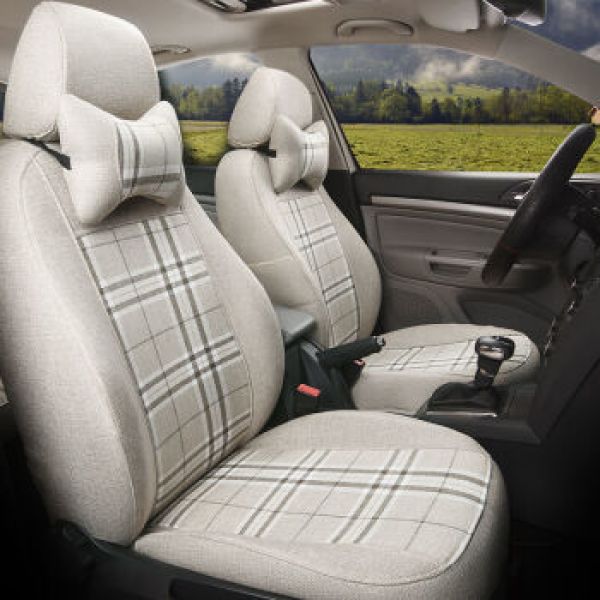 驰钦专车专用汽车座套全包仿麻布艺四季通用适用雷凌轩逸雅阁福克斯等 方格款-米色
