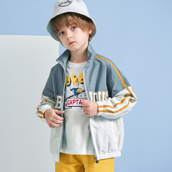 Puffykids 泡芙宝 男童休闲外套中大童春秋款外套拼接撞色印花宽松运动上衣