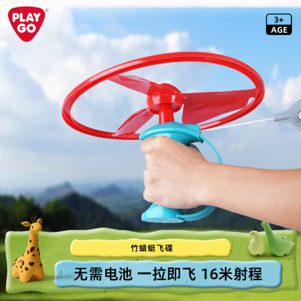 贝乐高 手拉绳式竹蜻蜓玩具弹射飞盘小孩飞碟飞天仙子儿童回旋镖科学实验