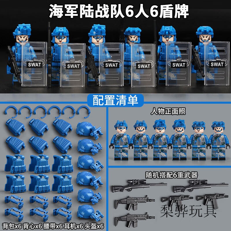 乐高高军事人仔迷彩幽灵特种兵特警人仔装备配件悍马车拼装积木 海军陆战队6款 6盾牌