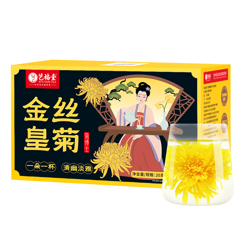 艺福堂菊花茶 精品金丝皇菊50大朵安徽黄山原产特独立包养生级搭金银花