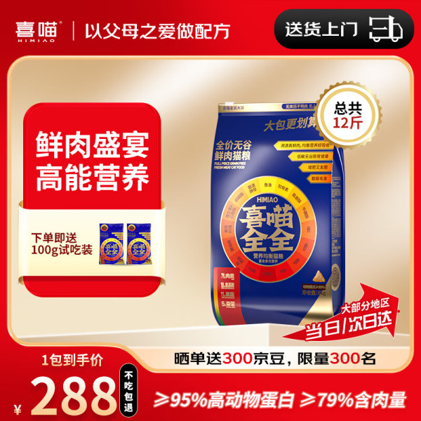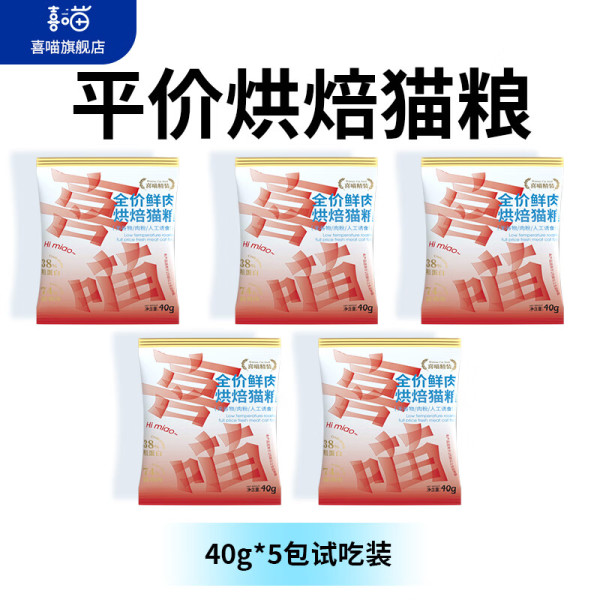 喜喵猫粮鲜肉猫粮长肉美毛营养高蛋白无谷全价通用猫粮 平价烘焙猫粮40g*5包
