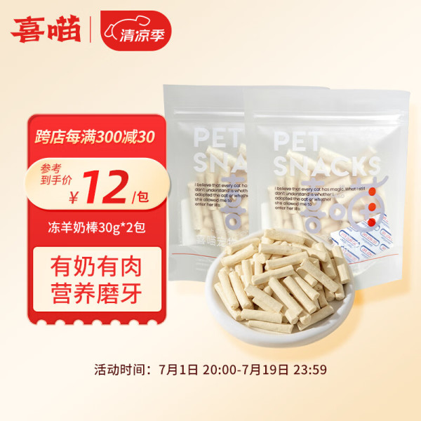 喜喵喜喵猫咪冻干羊奶棒猫犬磨牙洁齿营养奶酪棒成幼猫宠物零食饼干 冻干羊奶棒30g*2包
