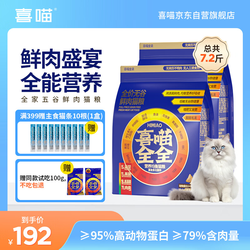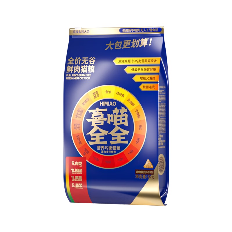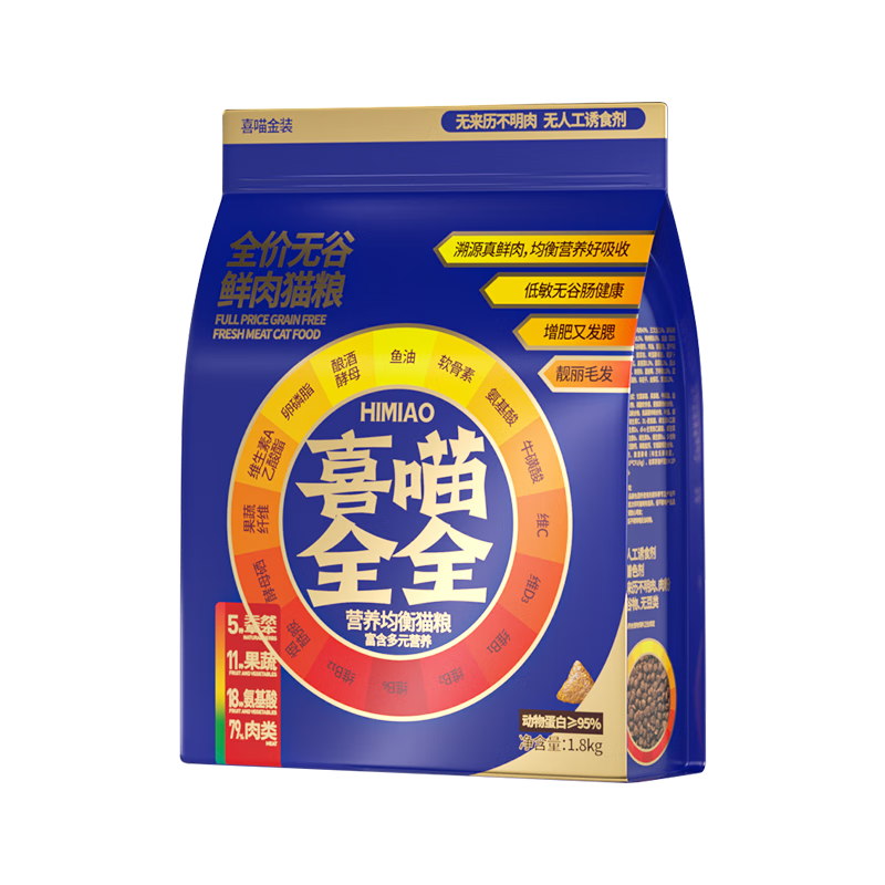 喜喵全价猫粮鲜肉猫粮美毛营养高蛋白无谷全价通用成猫幼猫美毛猫粮 【长肉美毛猫粮】