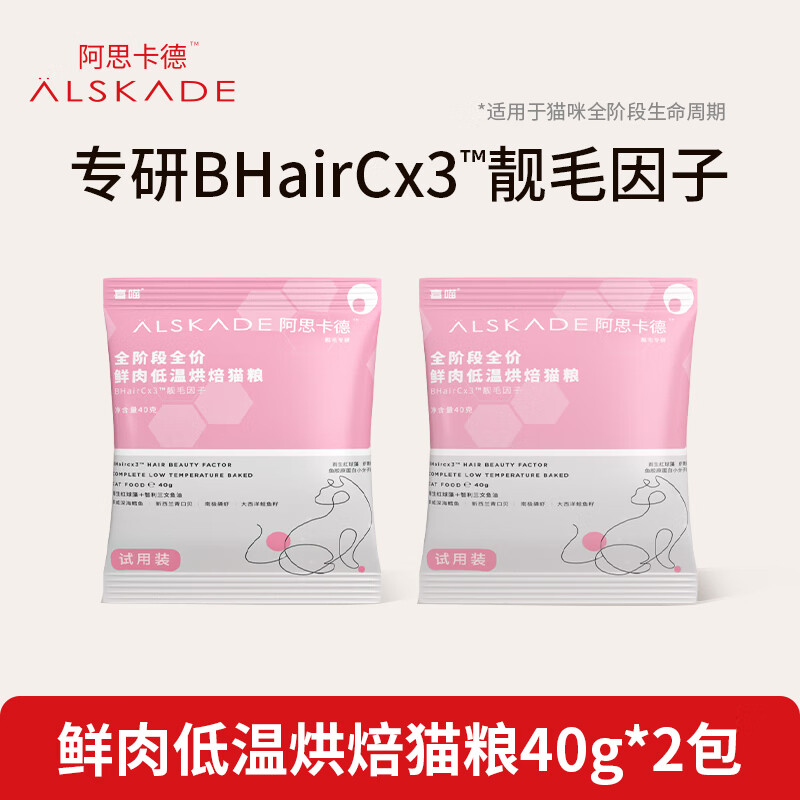 喜喵【猫粮试吃随心配】靓毛多肉低温烘焙猫粮肠胃养护全价无谷搭配 20天奇迹美毛猫粮40g*2