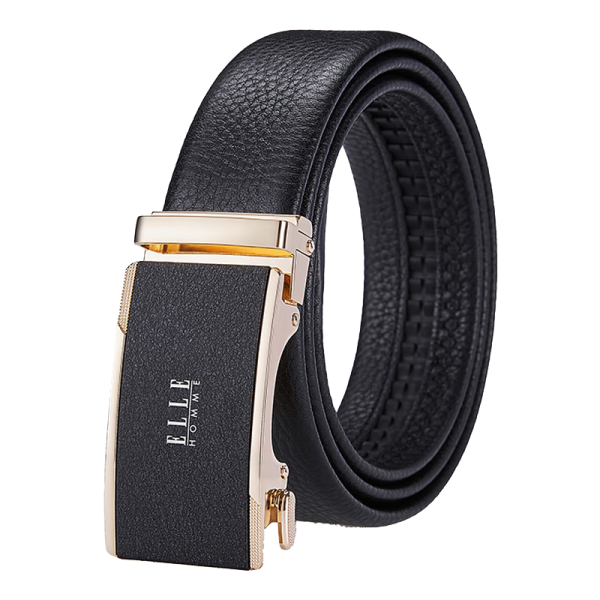 ELLE HOMME法国男士皮带男头层牛皮男士腰带真皮自动扣老公 【专柜礼盒】902082金色磨砂 115cm -130默认(可修剪)