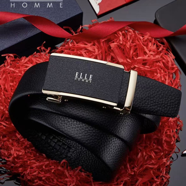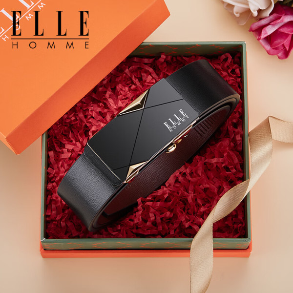 ELLE HOMME法国品牌男士皮带男真皮男士腰带自动扣老公 【专柜礼盒】902082时尚金色 110cm -130cm可/可修