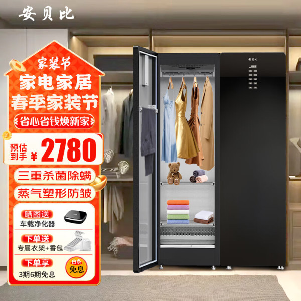 安贝比 Anbbaby 新品衣物护理机自动慰烫机烘干机家用大容量除味衣柜机干衣柜衣物消毒机杀菌消毒机 典雅黑