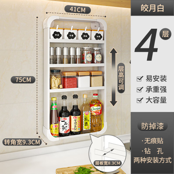 诗诺雅 厨房置物架壁挂调料架免打孔多层调味品盒挂架收纳架 白色四层